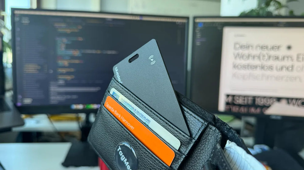 Mit der innovativen Technologie des SlimTag Pro bleibst du immer auf dem Laufenden. Losgegangen und die Brieftasche vergessen? Keine Sorge – du erhältst sofort eine Benachrichtigung auf deinem iPhone.